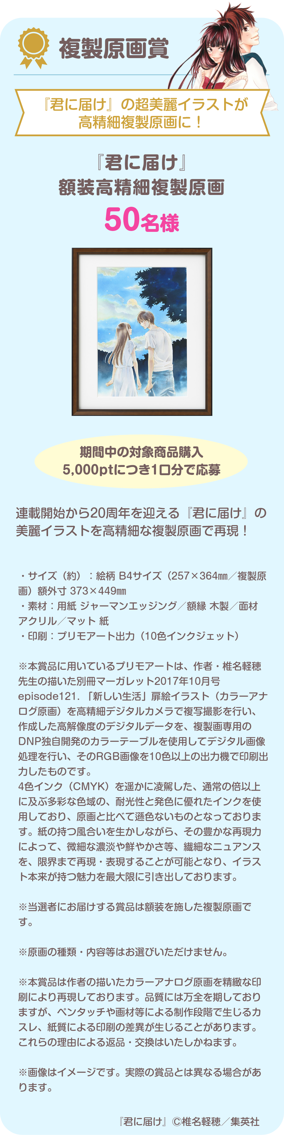 ◆複製原画賞 『君に届け』額装高精細複製原画