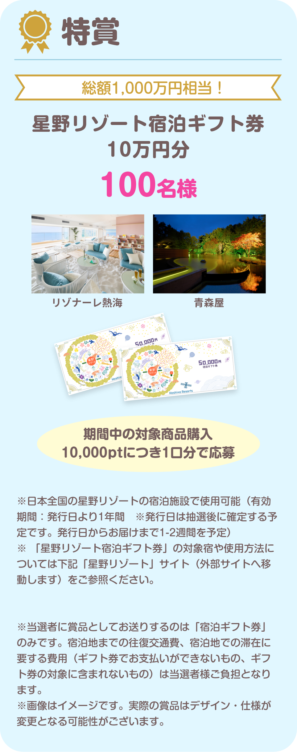◆特賞 星野リゾート宿泊ギフト券 10万円分