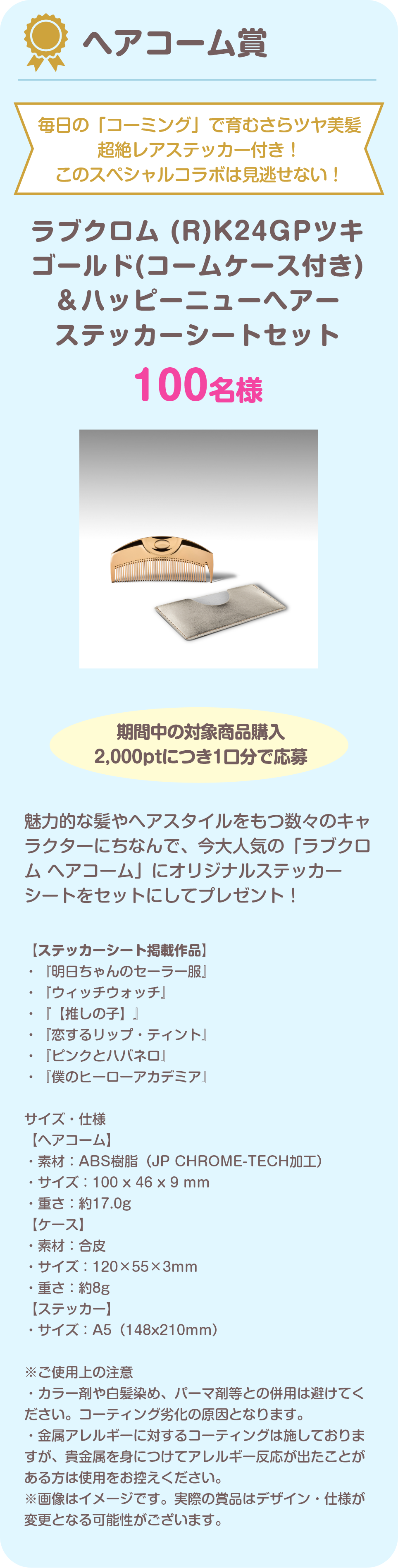 ◆ヘアコーム賞 ラブクロム (R)K24GPツキ ゴールド(コームケース付き)&ハッピーニューヘアーステッカーシートセット