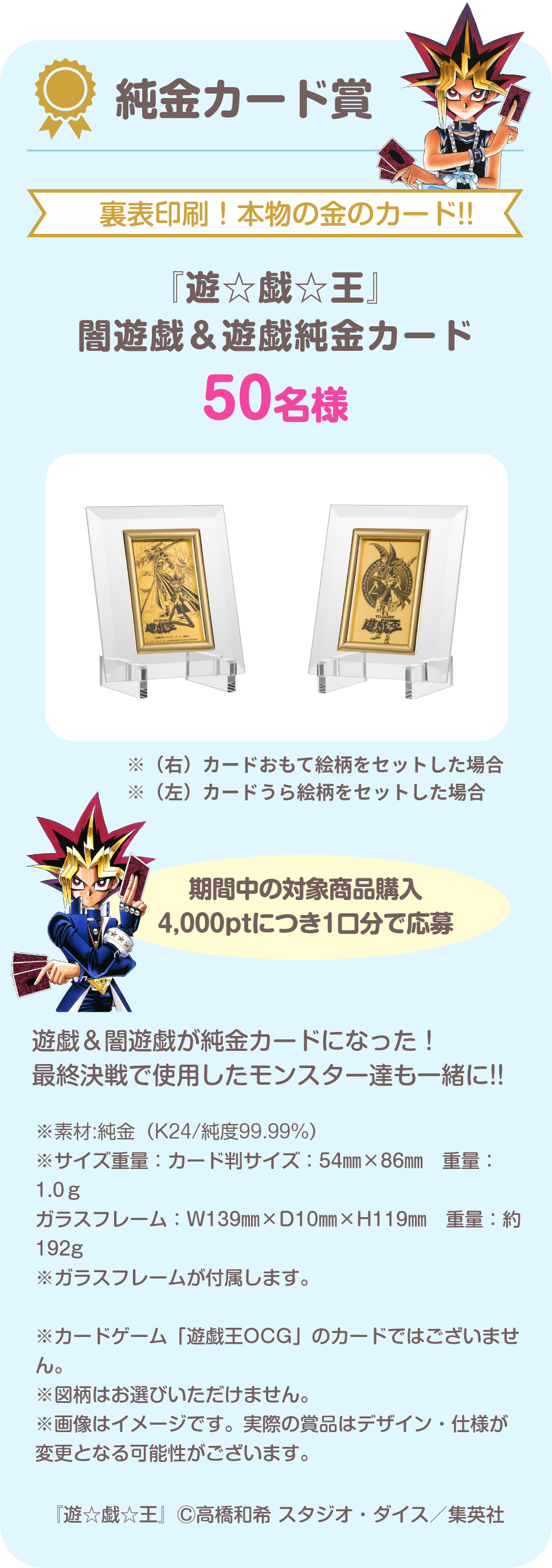 ◆純金カード賞 『遊☆戯☆王』闇遊戯&遊戯純金カード